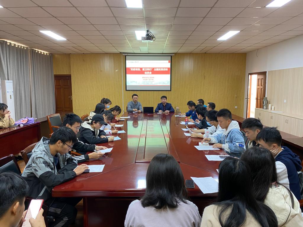 组织召开“防疫有我,爱卫同行”主题实践活动动员会,学习习近平总书记关于劳动精神、爱国卫生运动的重要讲话精神,向各班级主要学生干部传达目前疫情防控形势,指导各班级通过召开班会、班委会、寝室卧谈会等宣传防疫知识,教育引导全体同学高度重视疫情防控工作,养成勤洗手、常通风、少聚集、戴口罩等健康行为习惯,普及爱国卫生运动知识,筑牢防疫思想阵地。