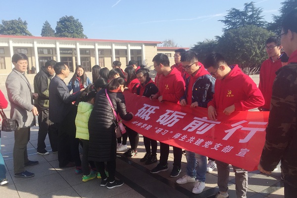 在烈士陵园主广场,鲜红的党徽在秋阳下熠熠生辉。研习社的同学们身穿统一服装,活动在庄严肃穆的气氛中开始。全体党员满怀崇敬与悼念之情,在“不忘初心、砥砺前行”横幅上庄严地签下自己的名字,全体党员重温入党誓词,铿锵有力的誓言,激励着每一名同志追寻先辈足迹,奋发图强,投身报国的理想和信念。随后的参观中,师生们详细学习了解了江淮烈士为革命事业抛头颅、洒热血的丰功伟绩。大家纷纷表示,通过缅怀先烈,使自己深受教育,在今后的学习、生活和工作中,一定要继承和发扬先烈们坚韧不拔、公而忘私、顽强拼搏、勇往直前的精神,按照“四讲四有”和“四个合格”的标准严格要求自己,真正发挥先锋示范作用。