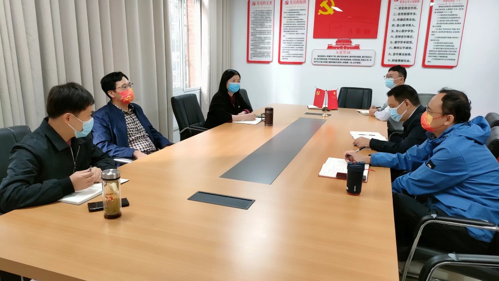 疫情防控工作专题会议。会议由院党委书记吕珺主持,在校应急值守的教职工参加会议。