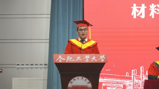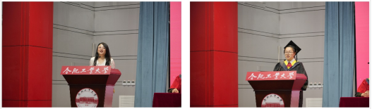 全体教师为毕业生送上真挚祝福,希望同学们能在强国筑梦的道路上践行“厚德、笃学,崇实、尚新”的工大精神,让青春在实现中华民族伟大复兴的征途中绽放绚丽光彩。安徽省优秀毕业生、“校长奖”获得者、2020级金属材料工程专业的姚文萱作为学位获得者代表发言,向大学期间所有提供关心、帮助和包容的师长、亲友和同学们致以最真挚的感谢,她表示将铭记母校的殷殷嘱托,奋楫笃行、敢为人先,争做德才兼备、能力卓越、自觉服务国家的骨干和领军人才。