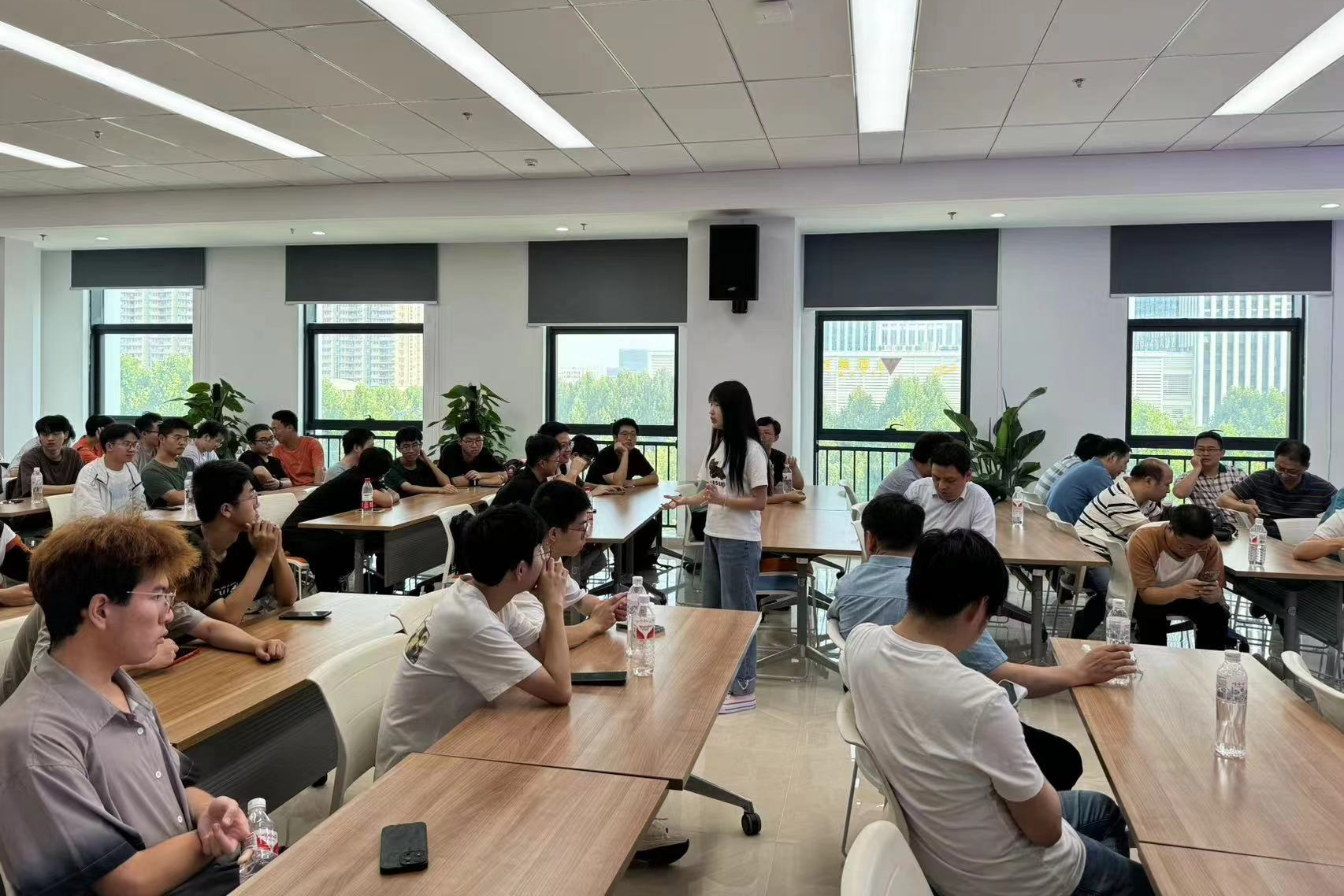 活动中,教师和本科生一行首先来到了合肥创新院的展厅。这里聚焦了科技成果转化的两大核心环节:“技术孵化”与“企业孵化”。通过展示,一方面使同学们认识到合肥市在新能源与智能网联汽车、数字乡村、低空经济等领域的战略布局,深切领悟到所学专业课程与科研成果的密切联系;另一方面也使教师们了解了创新创业的流程和政策,对实验室的成果转化方式有了实际体会。