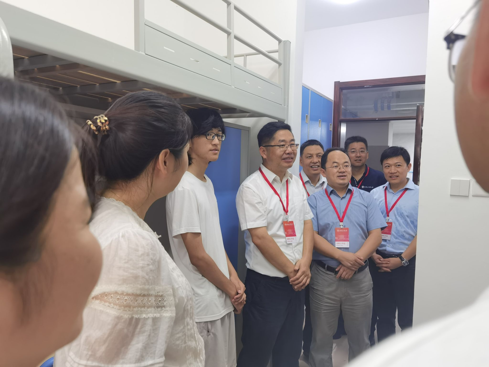 领导班子深入新生宿舍,看望新同学,并和新生家长亲切互动交流。