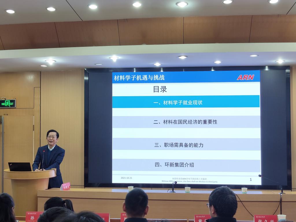 颁奖仪式结束后,刘铜庆以“材料学子机遇与挑战”为题,用翔实的数据和丰富的图表阐述了材料学子就业现状,深刻剖析了当前材料行业及材料学子当前存在的问题和面临的机遇与挑战,并强调了材料在国民经济中的重要地位。他还分享了自身职业生涯发展的心得体会,表达了对U8体育 学子的殷切希望,鼓励青年学生树立远大理想,珍惜大学生活,强化专业学习,提高综合素质,争做行业领军人物,为实现中华民族伟大复兴的中国梦贡献自己的青春和力量。