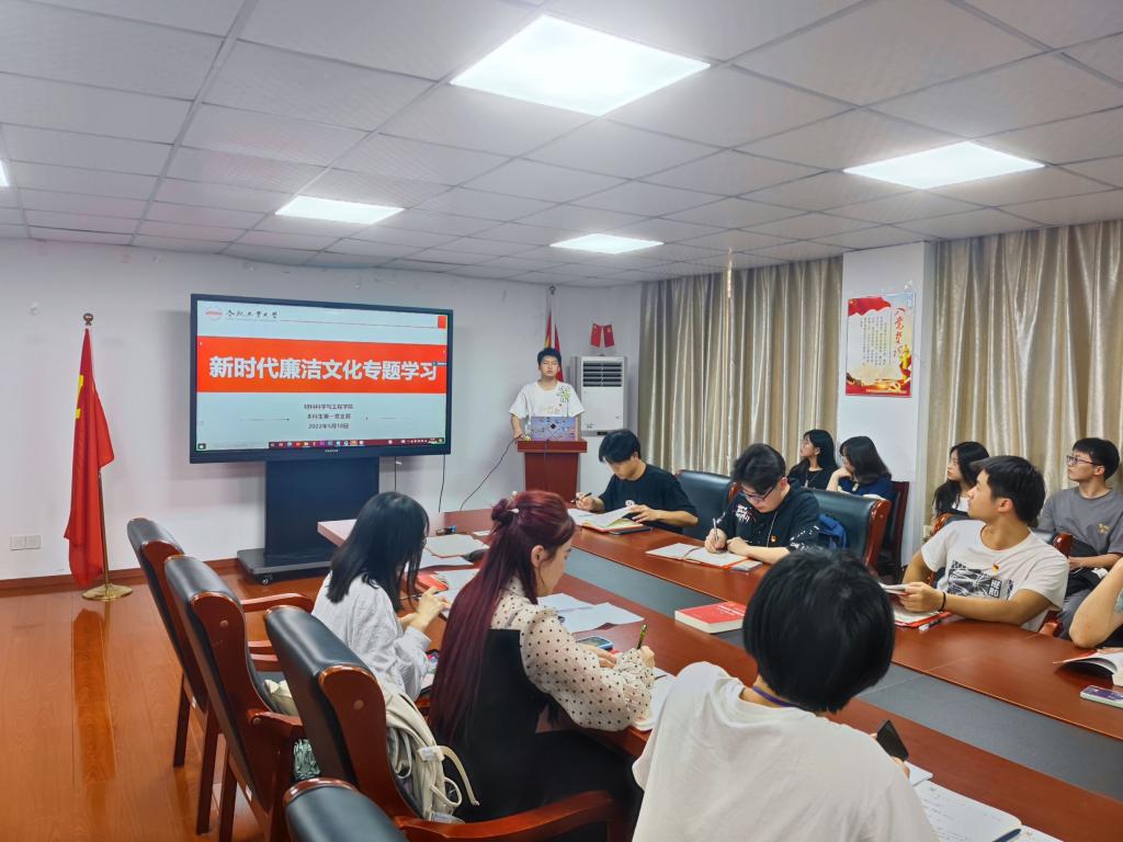 在交流讨论环节,同学们围绕学习内容展开激烈讨论,材料成型及控制工程19-2班的刁铮同学表示:“作为一名学生党员,要做到心中有党、心中有畏、心中有戒。廉洁是每名同学自觉自省的事情,我们要从思想根源和行为表率上擦亮大学生的廉洁‘底色’。”