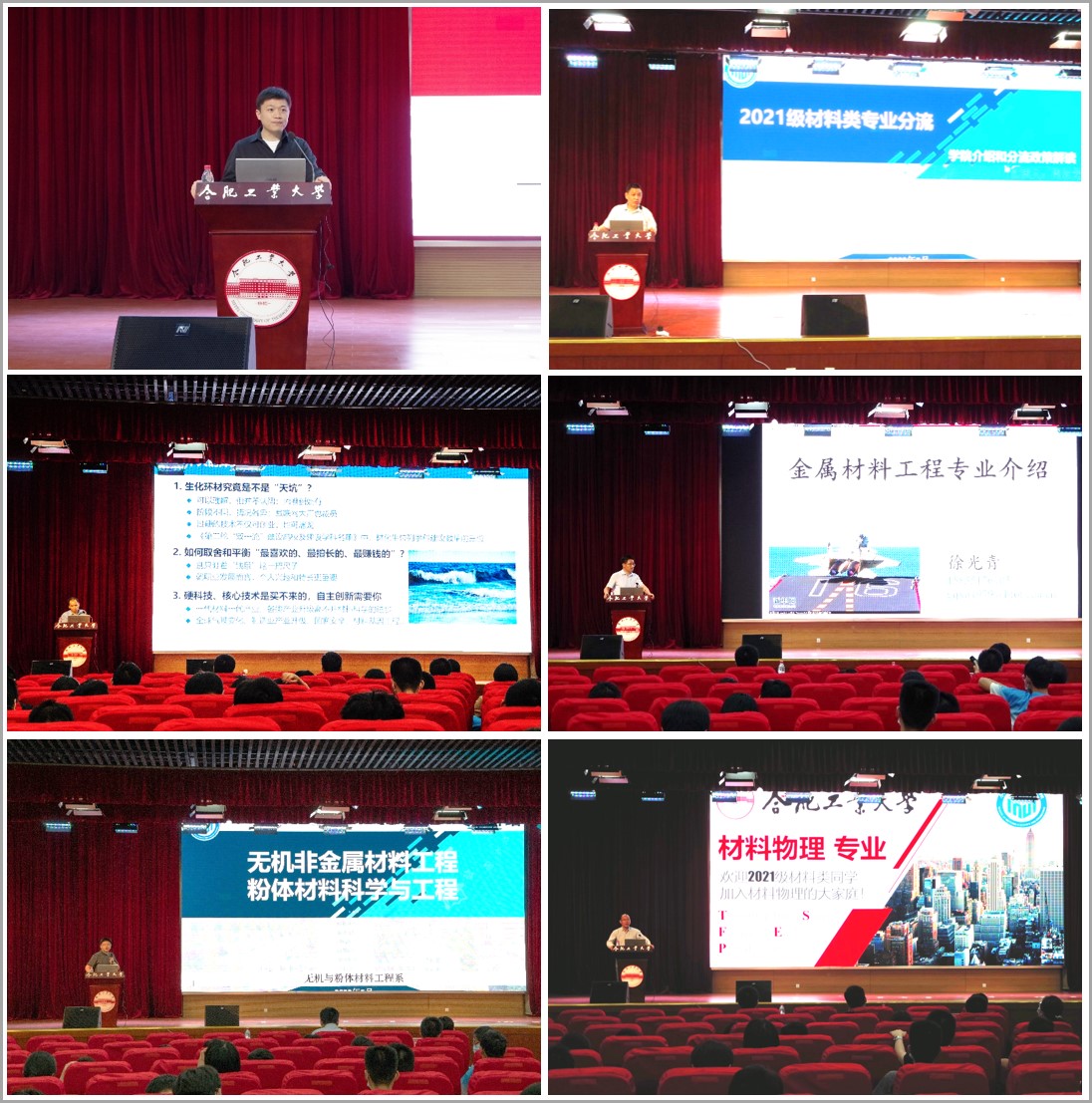 材料成型及控制工程系主任钟志宏教授、金属材料工程系主任徐光青教授、无机与粉体材料工程系主任鲁颖炜教授、材料物理及新能源材料与器件系主任许育龙老师分别对各专业人才培养目标,师资力量,学科发展前沿、教学科研成果、就业升学情况等作了详细报告,强化了学生的专业认知。