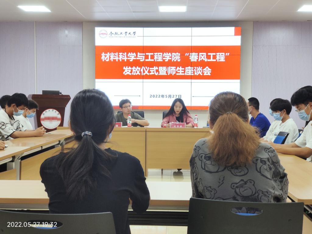在翡翠湖校区综合楼一楼多功能厅举办“春风工程”发放仪式暨师生座谈会,U8娱乐