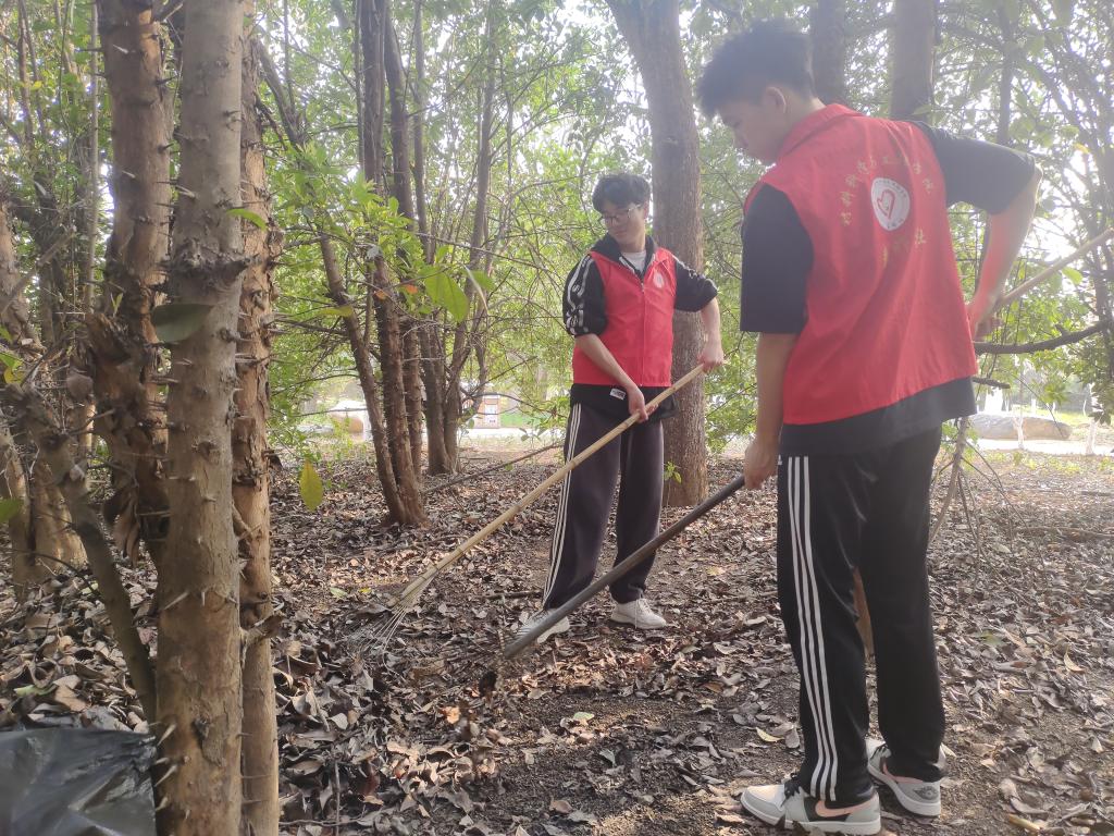 活动期间,在翡翠湖风景区负责人及环卫负责人的带领下,志愿者们对园区内树木的防冻稻草进行拆除、对集中的枯枝落叶进行清扫。志愿服务过程中,志愿者们两人一组进行配合,拆卸稻草、清扫落叶、收集垃圾……各个环节井然有序,配合默契,为翡翠湖风景区增添了一份光彩,高质量完成志愿服务工作。