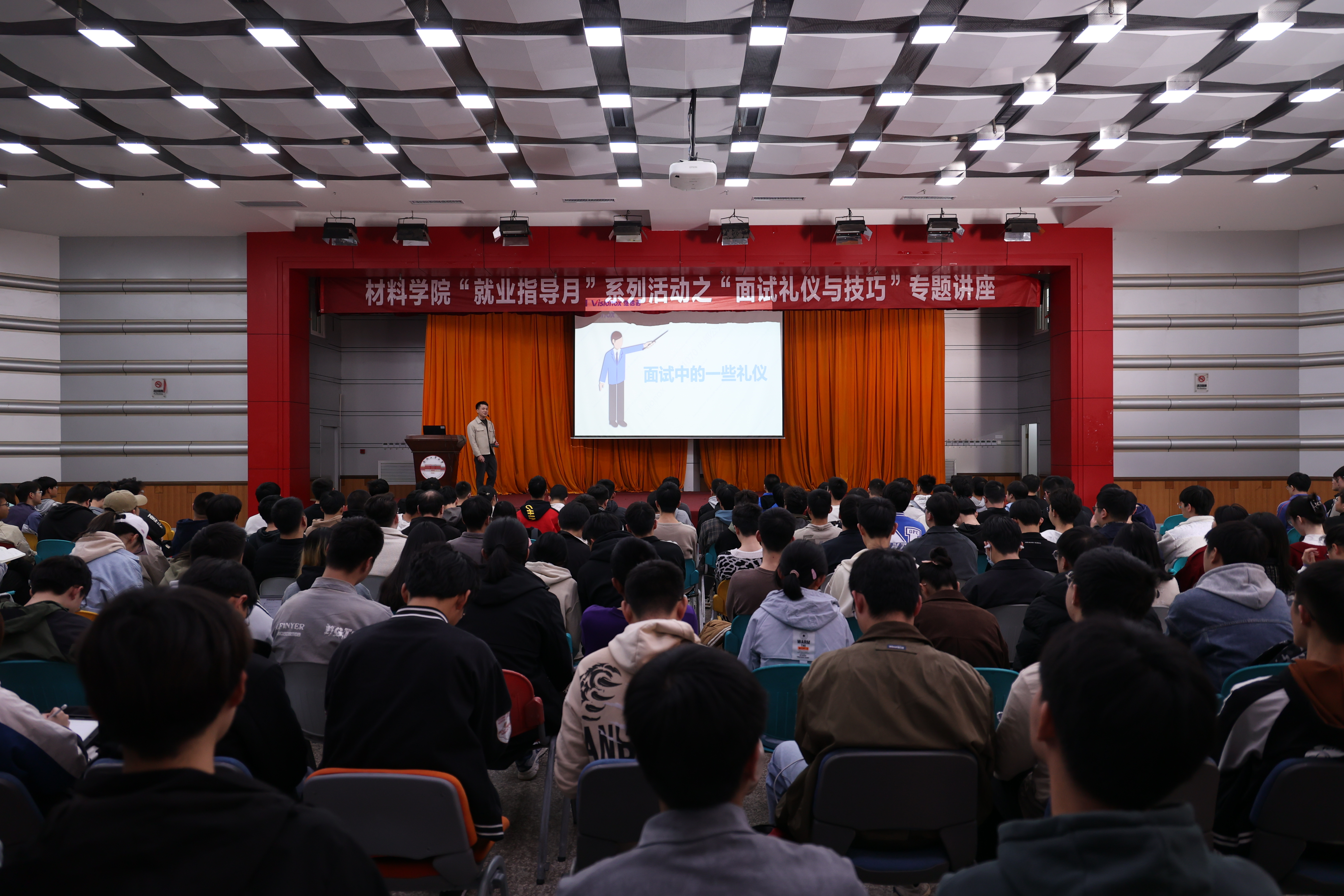 在屯溪路校区东风报告厅举办“大国之‘材’,‘职’面未来”就业指导月系列活动之“面试礼仪与技巧”专题讲座。本次讲座邀请了京东方大学堂认证人才测评师,新安人才网认证金牌面试官张道鲁主讲。U8娱乐