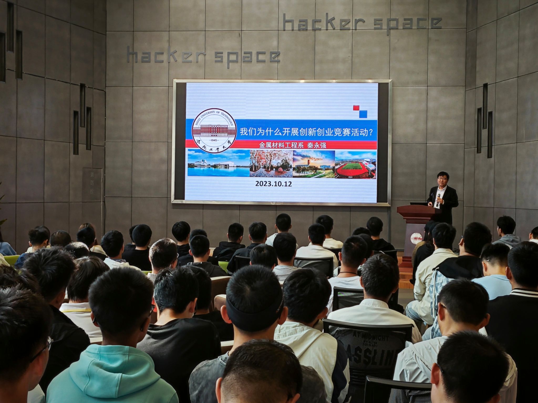 参观结束后,同学们来到了大数据中心宣讲厅,观看了“未来已来,为你而来——合肥工业大学双创教育掠影宣传片。紧接着金属材料工程秦永强老师结合学校第二课堂成绩单制度中科技创新板块为所有同学讲授了关于金属材料工程专业相关创新创业与学科竞赛项目,同学们纷纷表示受益匪浅。