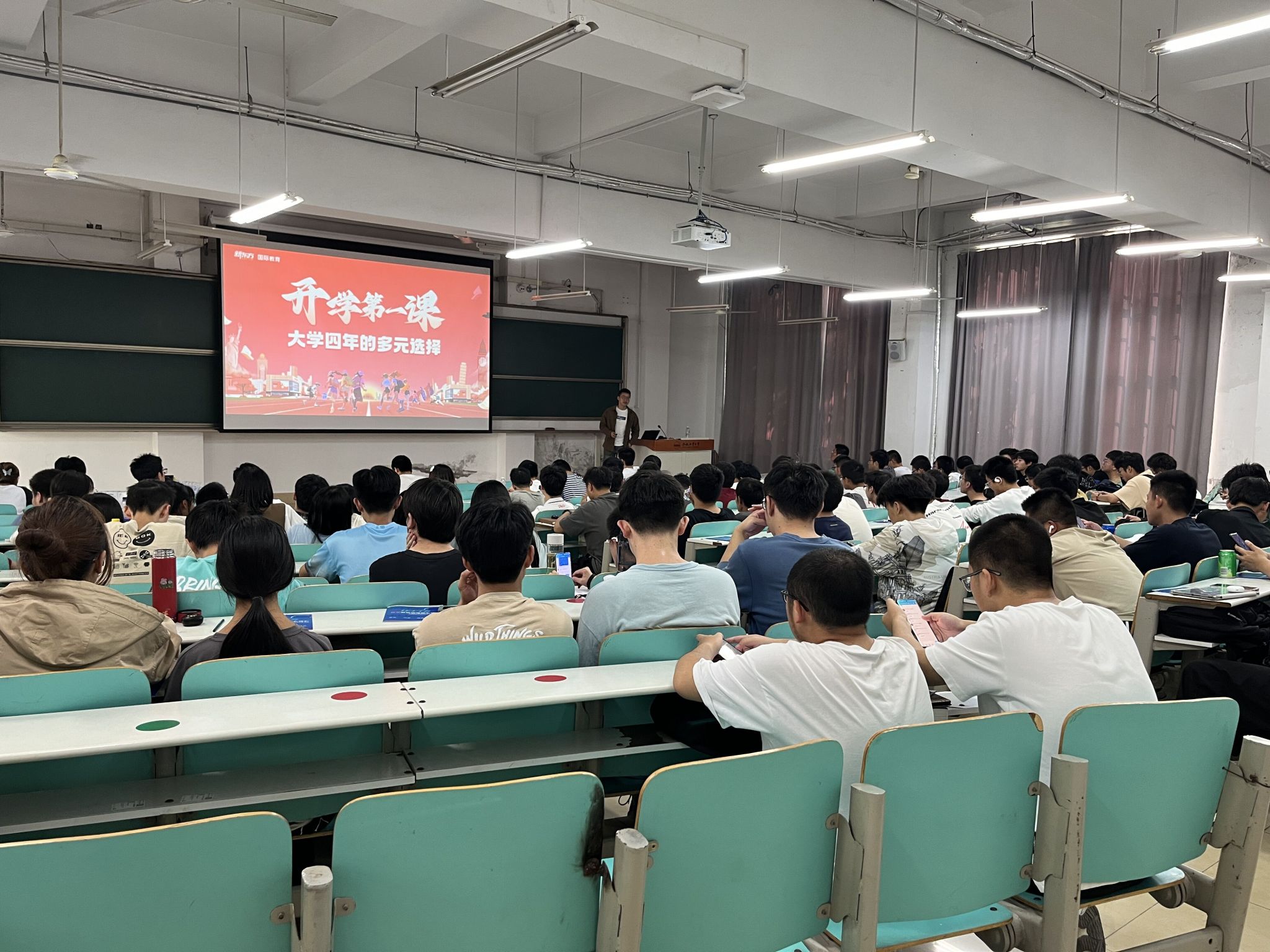 于翠一教201开展“大学第一课:大学四年的多元选择”职业生涯规划专题报告,报告邀请新东方教育科技集团刘学东讲师主讲,U8娱乐