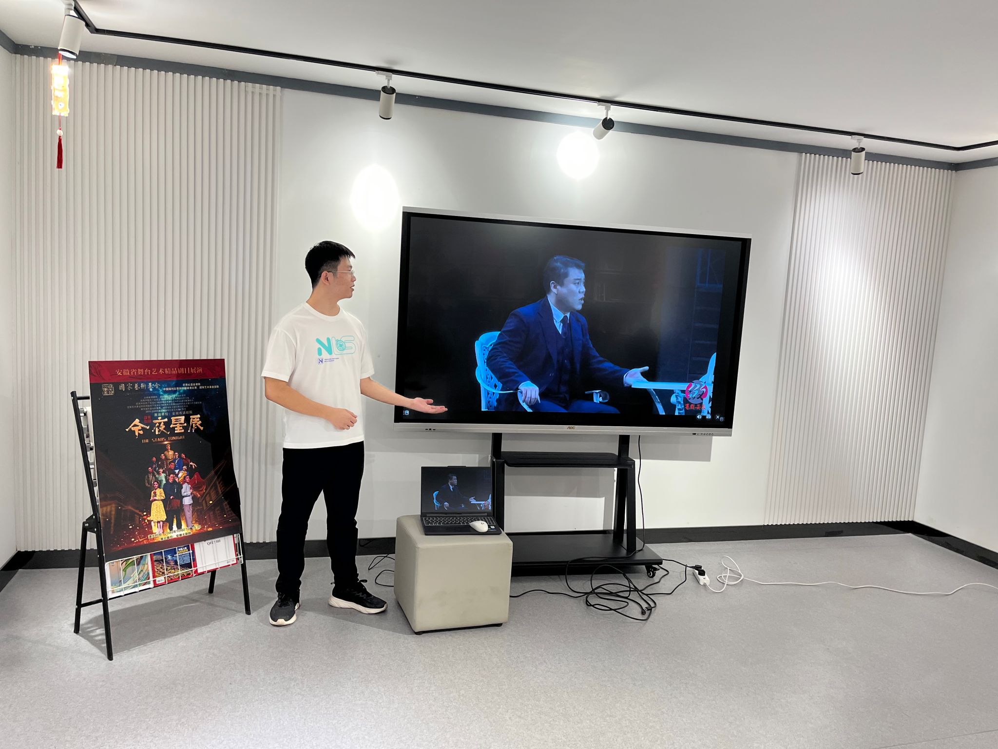在本次活动中,同学们共同欣赏了第五届华语戏剧盛典“建党百年主题创作十佳作品”、2019-2020年度安徽省社科奖艺术类一等奖作品《今夜星辰》。话剧《今夜星辰》以郭永怀、李佩夫妇生平事迹为原型,讲述了两人深厚的家国情怀。该剧以李佩和女儿郭芹的情感意识流动为线索,把追忆和现实置于时空交错中呈现一代科学巨匠的跌宕人生,以小家庭串联大事件,运用多重场景再现以郭永怀、钱学森为代表的“两弹一星”共和国功臣的奉献精神和伟大人格,勾勒出那个筚路蓝缕倾情奉献的光荣年代,将家庭亲情、革命友情、师生真情、家国之情融为一炉。