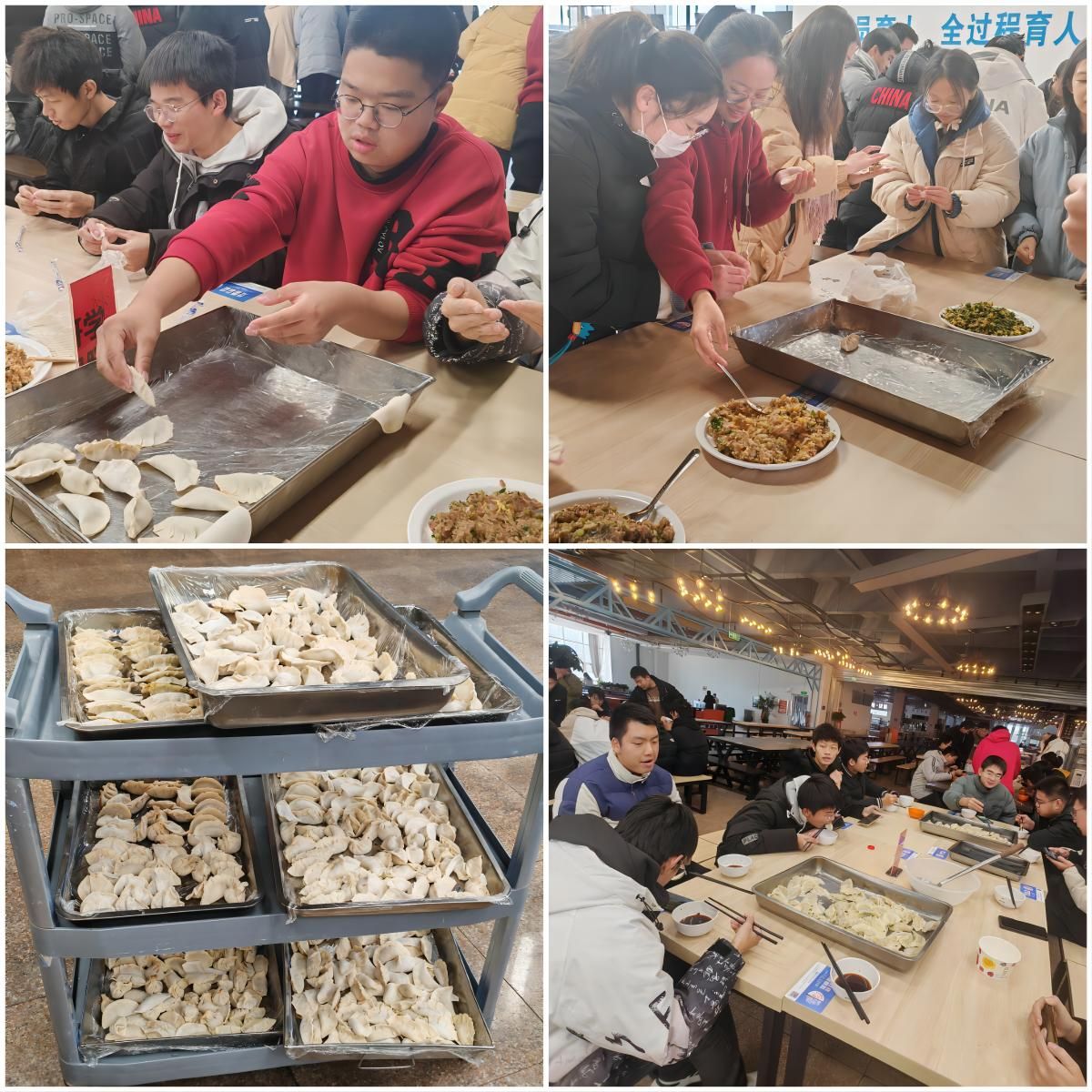 组织部分班级于翡翠湖校区二食堂开展“弘扬传统,情暖冬至”冬至包饺子活动,100余学生主动报名参与。