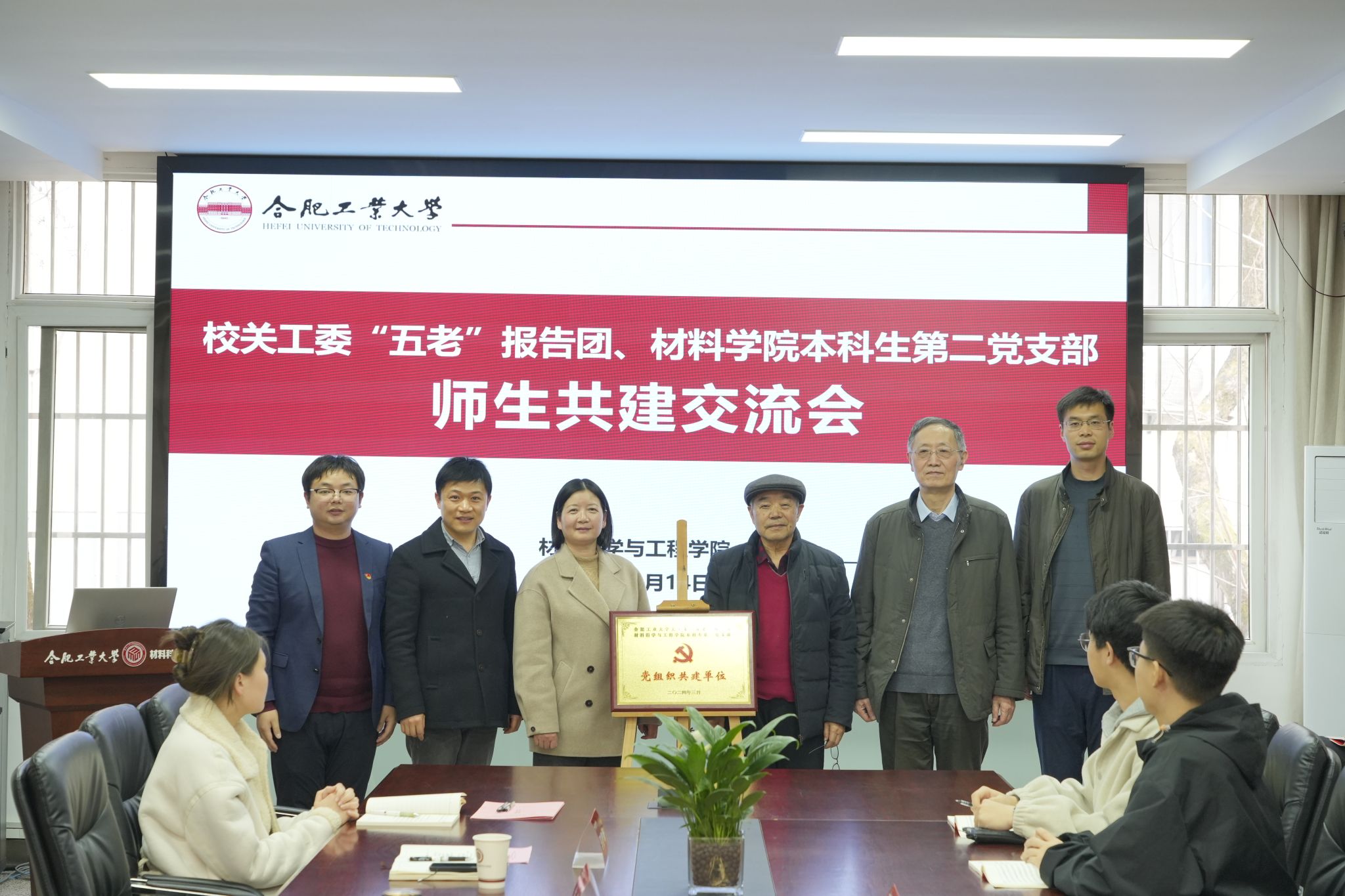 本科生第二党支部与学校关心下一代工作委员会“五老”报告团在材料楼综合服务中心210开展结对共建活动。党委离退休工作部(处)部长李晓玲、校关工委常务副主任王皖江、校关工委“五老”报告团团长钟玉海、U8体育