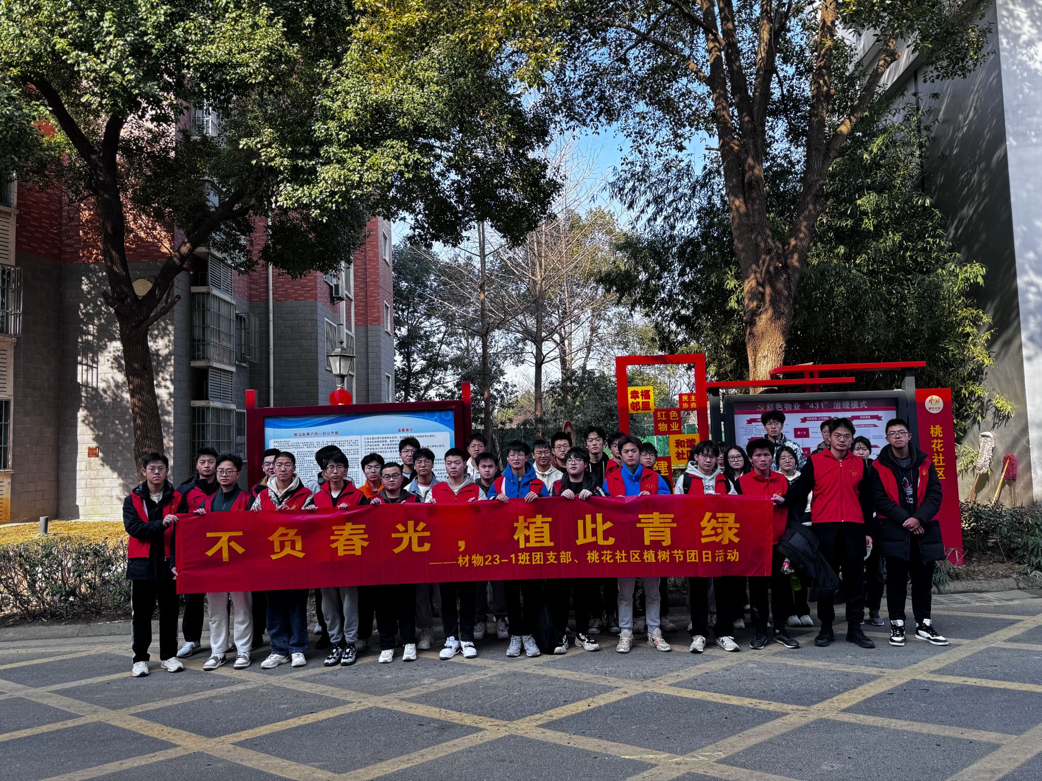 组织材料物理23-1班团支部赴桃花社区开展“不负春光,植此青绿”植树节主题团日活动,材料物理23-1班全体同学参与此次活动。