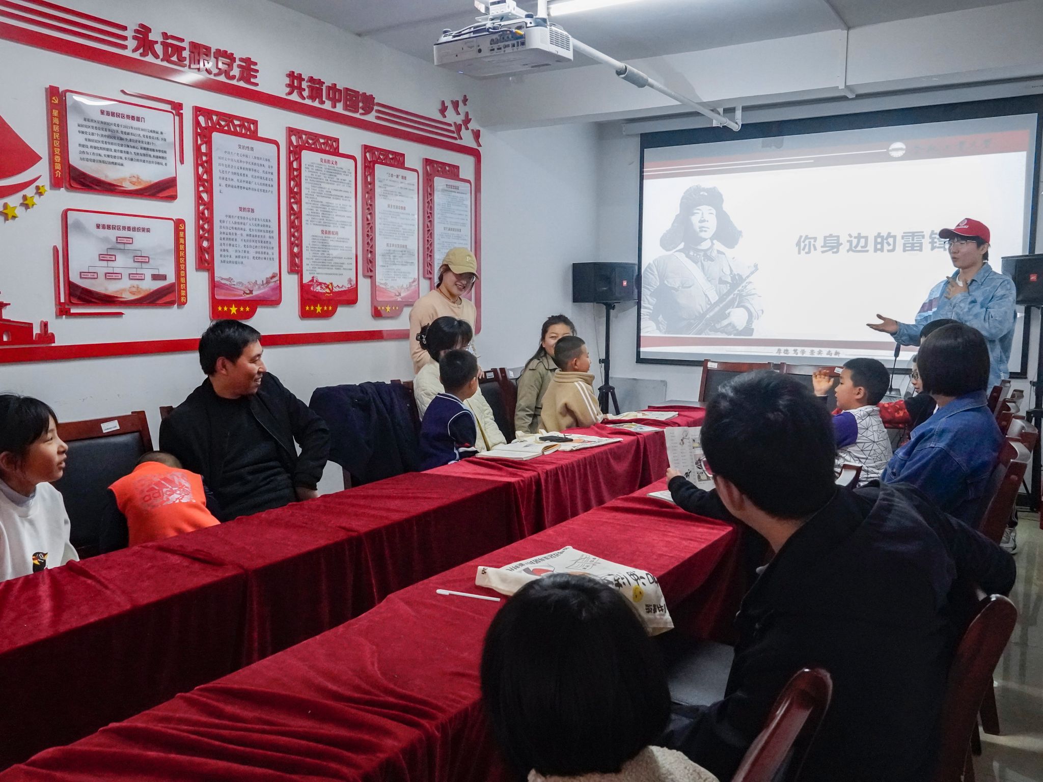 活动前夕,志愿者们深入阅读交流雷锋同志的日记、观赏影音视频,学习雷锋故事,理解雷锋精神。活动当天,志愿者以雷锋同志的生平经历、典型事迹引入,由浅入深,由小见大,逐步引出雷锋精神和螺丝钉精神;伴着“雷锋精神——一座永不褪色的丰碑”视频的生动讲解,参加活动的小朋友们对于雷锋有了深入的了解。最后,通过“当代雷锋”人物事迹,志愿者引导小朋友们如何通过自身的实际行动发光发热,践行为人民服务的雷锋精神。