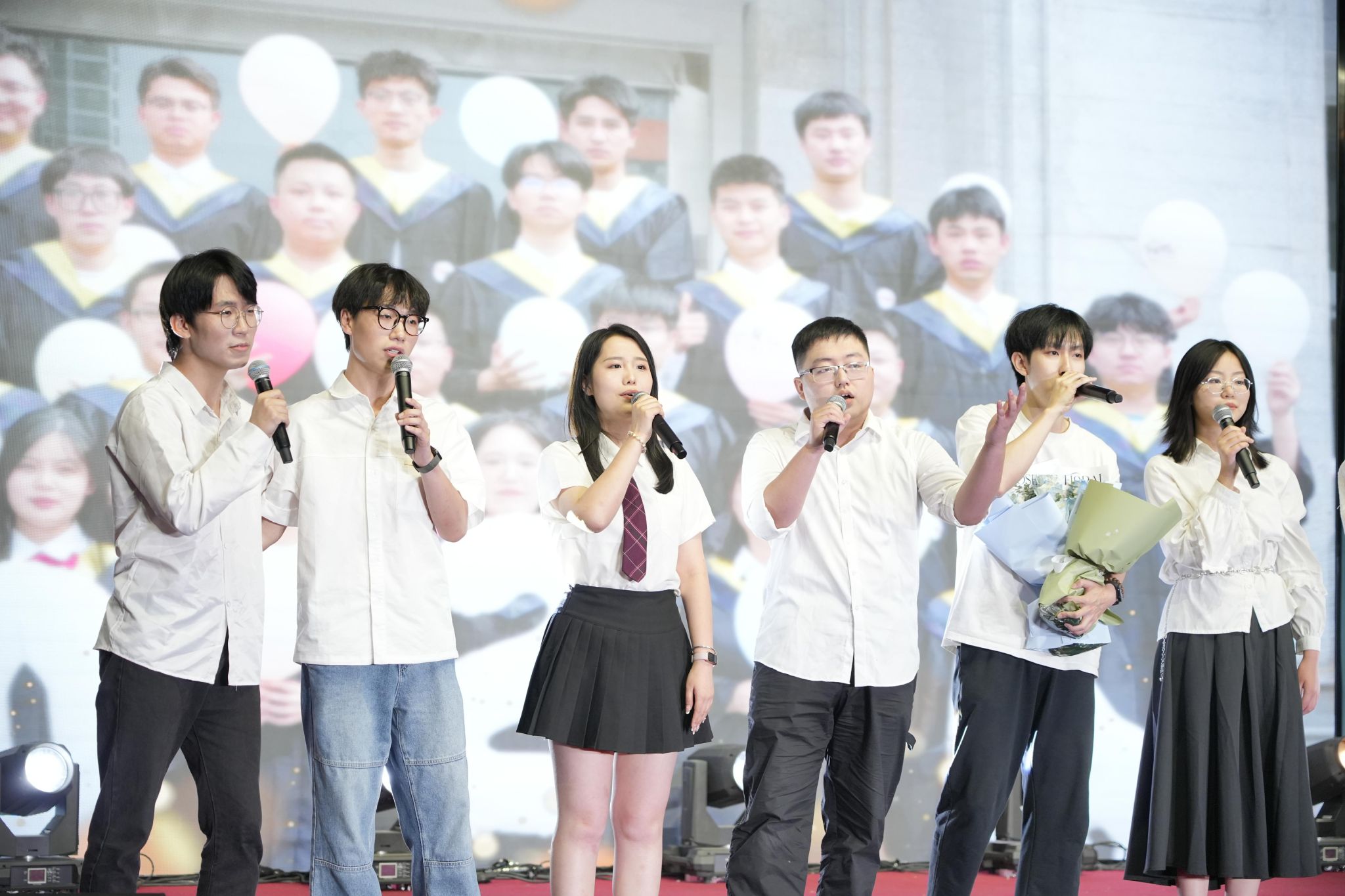小品《时间都去哪了》用诙谐幽默的方式让同学们思考岁月流逝,光阴飞逝,引得观众捧腹大笑,获得全场阵阵掌声;无机和粉体毕业班全体同学带来的大合唱《后来》和《最炫民族风》以优美的旋律,动人歌声将晚会推向又一个高潮,祝愿全体毕业生怀揣梦想,勇毅前行;朗诵《有你的夏天》以饱满的情感、真挚的语言表达了毕业生对大学的不舍,对同学、老师的不舍;歌曲串烧《曾经的你》《海芋恋》《手写的从前》等,展现了材料学子们的青春和活力。