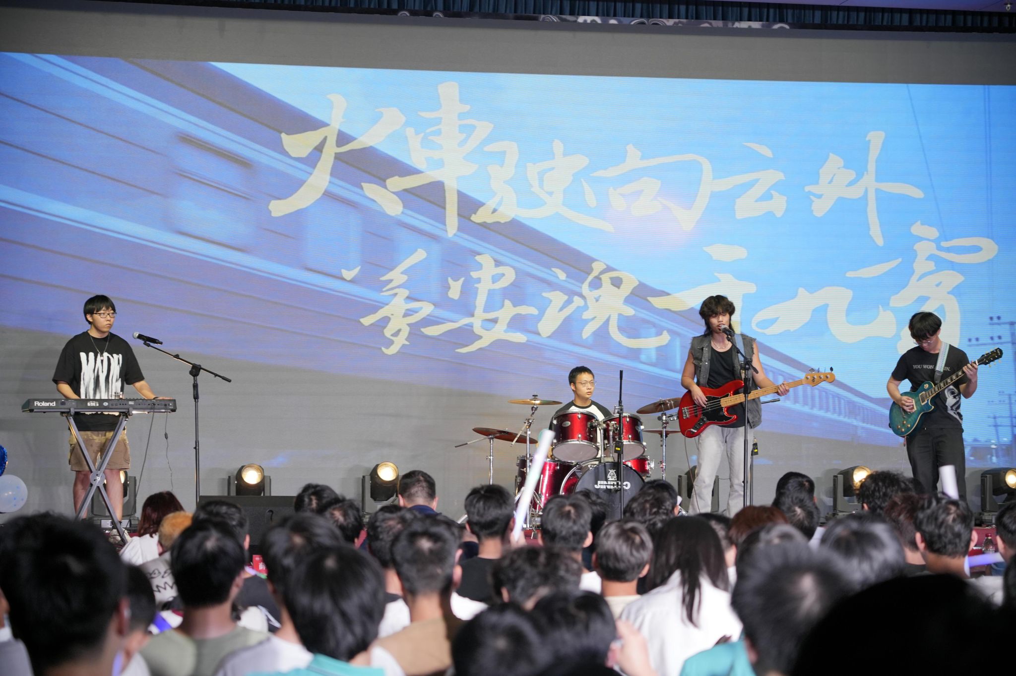 欢送会在乐队歌曲《火车驶向云外,梦安魂于九霄》和《生活因你而火热》中拉开序幕,欢快热烈的节奏瞬间点燃现场气氛。手语操《有我》演绎出青年大学生朝气蓬勃的生机,昂扬向上的斗志和爱党爱国的浓厚情怀;相声《我们毕业啦》诙谐幽默地再现了大学生的日常生活,妙趣横生;街舞《fearless》将晚会气氛带入高潮。