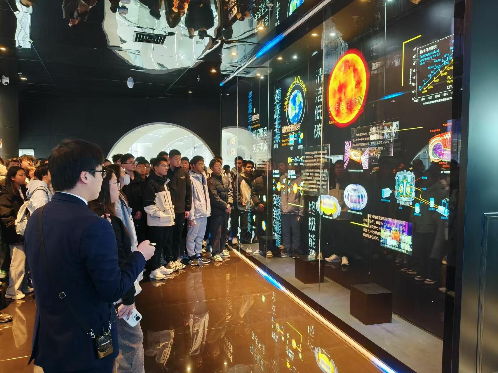 随后,U8娱乐 师生一行来到全国科普教育基地、聚变创新展览馆参观学习。在讲解员带领下,同学们依次参观了“聚变印象”“聚变科普”“聚变征程”“聚变成果”“聚变未来”等五个部分,馆内沉浸式数字沙盘、立体全息影像、立体形象宣传影片等现代声光电技术,展示出了磁约束核聚变大科学团队坚守初心、开拓创新,不懈追逐人类聚变能源梦想的奋斗历程。在参观过程中,老师们耐心解答同学们的疑问,进一步激发了大家对材料科学与固体物理交叉领域的研究兴趣。