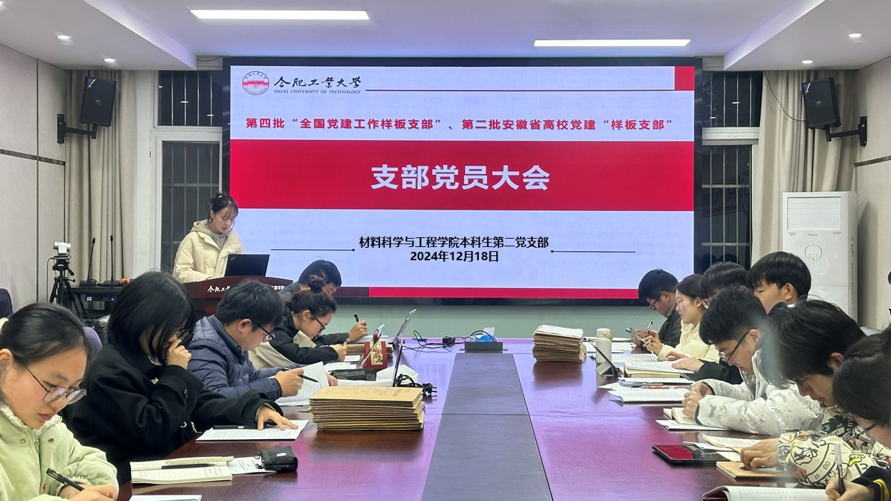 12月18日,全国“样板支部”、U8体育 本科生第二党支部在屯溪路校区小红楼210召开了2024年下半年预备党员转正支部大会暨“材料强国”(第一期)专题政治理论学习。大会由党支部副书记程振洋主持,支部全体党员30余人参会。