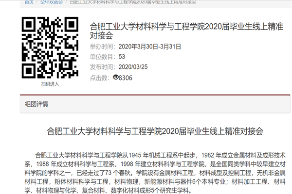 经过精心准备,本次精准就业对接会共有53家用人单位报名参与,提供近600个工作岗位,企业类型包含国企,民企以及合资企业等,用人单位的招聘信息均已上传到合肥工业大学就业信息网,方便全校毕业生查阅并投递简历。其中宣伟涂料、瑞鹄汽车模具、广东世创金属科技等10家用人单位通过腾讯会议、QQ群或者公司平台进行线上宣讲会。U8娱乐