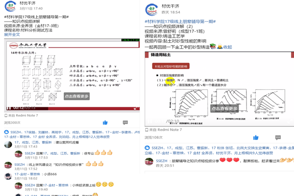 本次活动以“学优创优,做最美材料人”为主题,充分利用网络平台召开网络会议指导学生党员、学生骨干发挥榜样示范作用,建立线上学业帮扶平台和帮扶机制,立足年级QQ公众号、腾讯课堂等网络平台先后推出朋辈辅导之“笔尖课堂” “知识点短视频分享” “小讲师特色课堂”等活动,高年级的课程涵盖了《粉末冶金原理及工艺》《有色金属加工技术》《金属材料成型基础》《成型原理及工艺》《材料力学性能A》《材料分析测试方法》《铸造工艺学》《固体物理》等5个专业门类的13门专业主干课程的学业帮扶,通过在同学中招募学业优秀的志愿者,定期分享优秀习笔记、学习心得、学习成果,择优展示共享学习资源等,并对线上学习课程的重难点知识点利用“知识点短视频分享”讲解的方式驻点解析。此外,还对线上学习困难学生,利用网络平台“特色小课堂”开展线上朋辈授课和交流答疑活动。