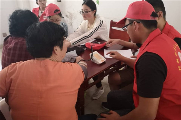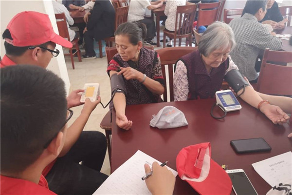 志愿者们一行来到社区的活动中心,给平日清静的老人们带来了欢声笑语,整个社区活动中心洋溢着温馨、祥和的气氛。志愿者们进行了合理的分工,有秩序的组织老人们分别逐个测量血压,对于血压偏高、偏低的老人志愿者们耐心的嘱咐老人们要合理膳食。看着行动不便的老人,志愿者们主动上前搀扶、慰问。一句句温暖的话语,一声声细心的嘱咐,让老人们备感温暖,也让老人们深深地感受到来自社会的关爱。
