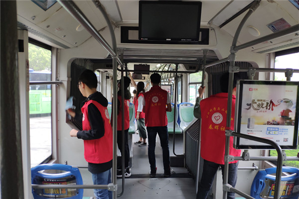 春晖社校园服务部志愿者一行前往226公交车始发站——翡翠湖公园公交站开展了“清洁公交,情系公益”主题志愿服务活动。