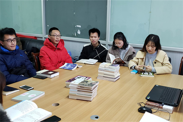 充分利用QQ公众号等线上平台进行优秀书目推荐、经典书籍阅读分享、发布读书招募令等形式多样的宣传活动,最终14名同学获得了“荒岛读书”的学习、交流、分享机会。读书交流分享环节,《国富论》、《瓦尔登湖》、《罗生门》、《简·爱》、《浮生六记》等多本经典书籍呈现在了交流会活动现场。