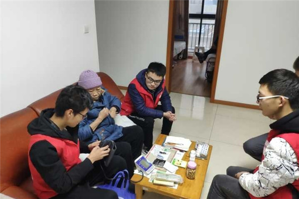 活动当天,志愿者们冒着绵绵细雨奔走于各类小店,为了能够给老人们带去温暖和关怀,他们分别购买了蔬菜和水果。来到公寓楼下,在小区物业工作人员的指导下,志愿者们纷纷来到了老人的家中。老人们热情的招待志愿者们进屋。随后,志愿者们进行了分组协作,有的负责陪伴老人们聊天、有的负责卫生清扫、有的负责帮老人们量血压,大家忙的不亦乐乎。在聊家常的过程中,老人们一件件的讲述着自己年轻时候的过往,志愿者们听的有滋有味,不时地还会追问其中的细节。志愿者们根据老人的血压测量结果耐心的向老人们分享了一些降血压的生活饮食小常识,希望老人们能够健康饮食,幸福生活每一天,2个小时的志愿服务时间过得飞快,志愿者们与老人在依依不舍中分别。