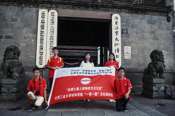位于宁波三江口东岸的庆安会馆,又名天后宫,系甬埠北号船商于清咸丰三年(1853)捐资建成,为了探究古今贸易往来对当地居民生活的影响,合肥工业大学暑期实践团队于7月21日专程拜访了庆安会馆的主要负责人丁洁雯老师。
