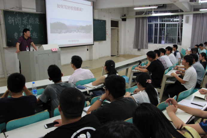 组织的“新闻稿采编与写作” 专题讲座在翡翠湖校区召开,讲座邀请了党委宣传部周慧老师就新闻稿的采编与写作技巧给同学们进行了讲解。