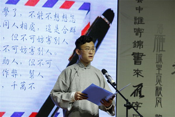 孟令孜同学和她的父亲分享了来往的书信,传达了学生与父母间浓郁的亲情。书信中平淡的语言、真实的情感、殷切的期望、谆谆的告诫感动了全场的观众。在品读师恩环节,U8体育