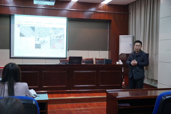 此次崔老师做了题为《Synthesis of 1D/2D nanomaterial arrays as matrix for electrochemical biosensing and supercapacitors》的学术报告。首先阐述了纳米材料在生物传感器中的优势和应用。随后,从制备、性能和应用等方面讲解了对石墨烯/CeO2复合材料的研究,并展示了部分学术成果。报告结束后,同学们都表示对纳米材料的相关优势和应用有了大致了解,疑难之处也向崔老师做了相关提问并积极提问,对于同学们的问题,崔老师也都做了针对性的解答。至此,此次报告圆满结束。