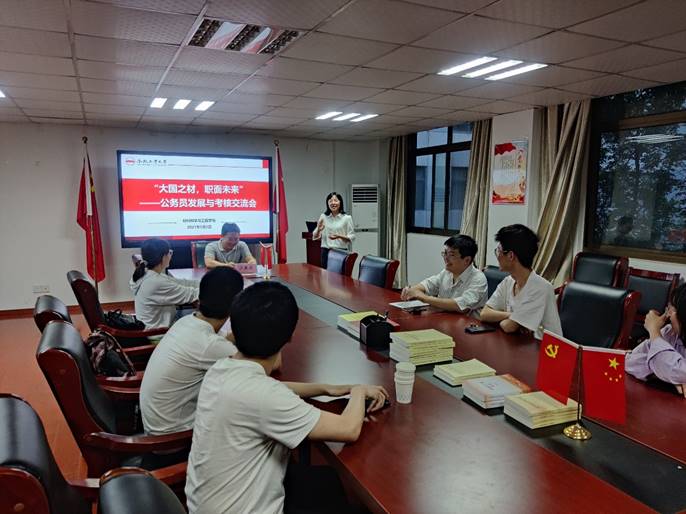 于5月8日晚在屯溪路校区材料楼党员之家举办“大国之材,职面未来”公务员选拔与发展交流会,交流会邀请2015年考取安徽省选调生的王戴君同志做主讲。U8娱乐