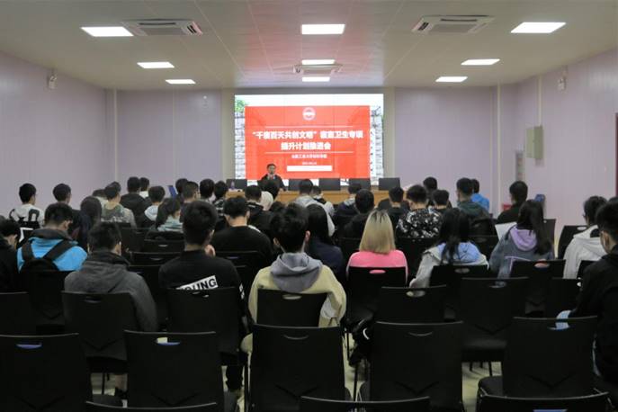 在综合楼多功能报告厅举行了“千寝百天 共创文明””寝室卫生专项提升计划推进会,U8娱乐
