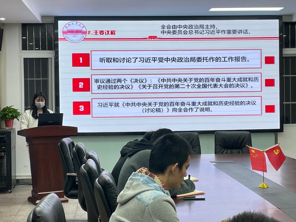 研习社联合本科生第三党支部在小红楼会议室开展“学习十九届六中全会精神”专题研讨活动。本次活动由研习社负责人主持,研习社成员及第三党支部全体支委参与活动。