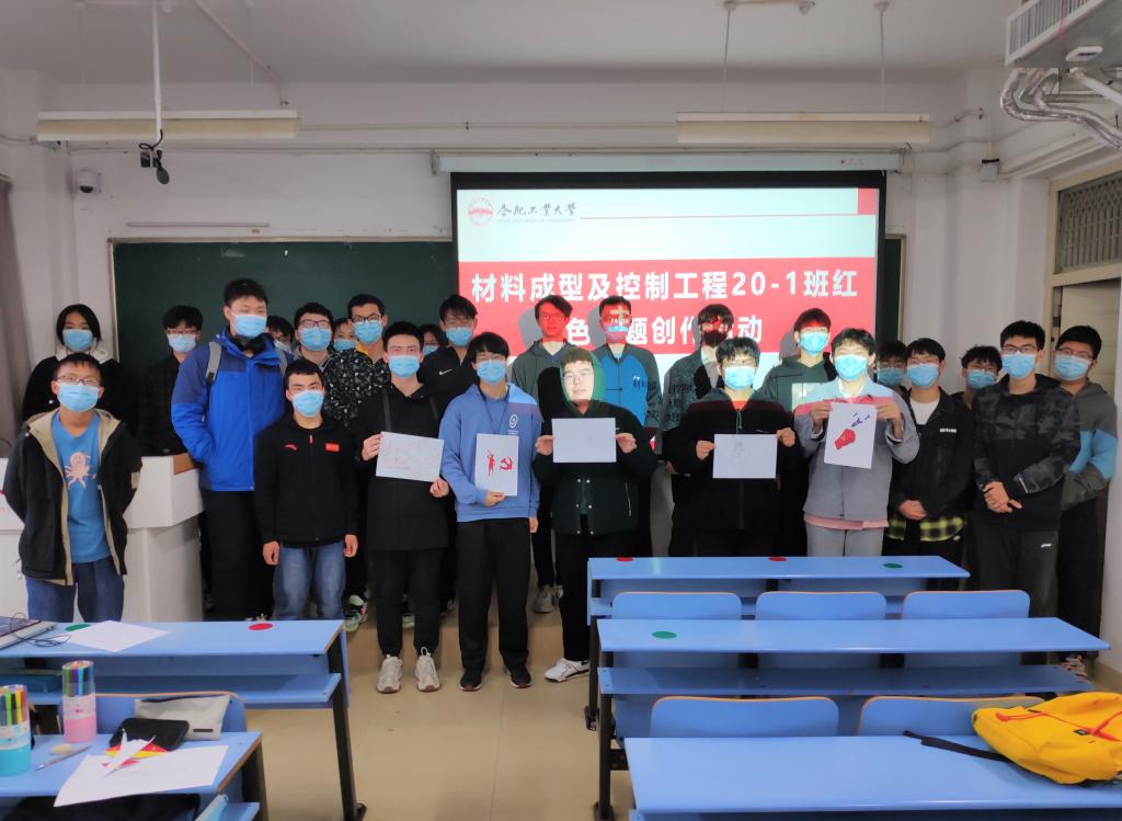 在翡翠湖校区六教401开展了“忆百年峥嵘岁月,绘赤子报国之心”红色主题创作活动,材料成型及控制工程专业20-1班全体同学参加活动。