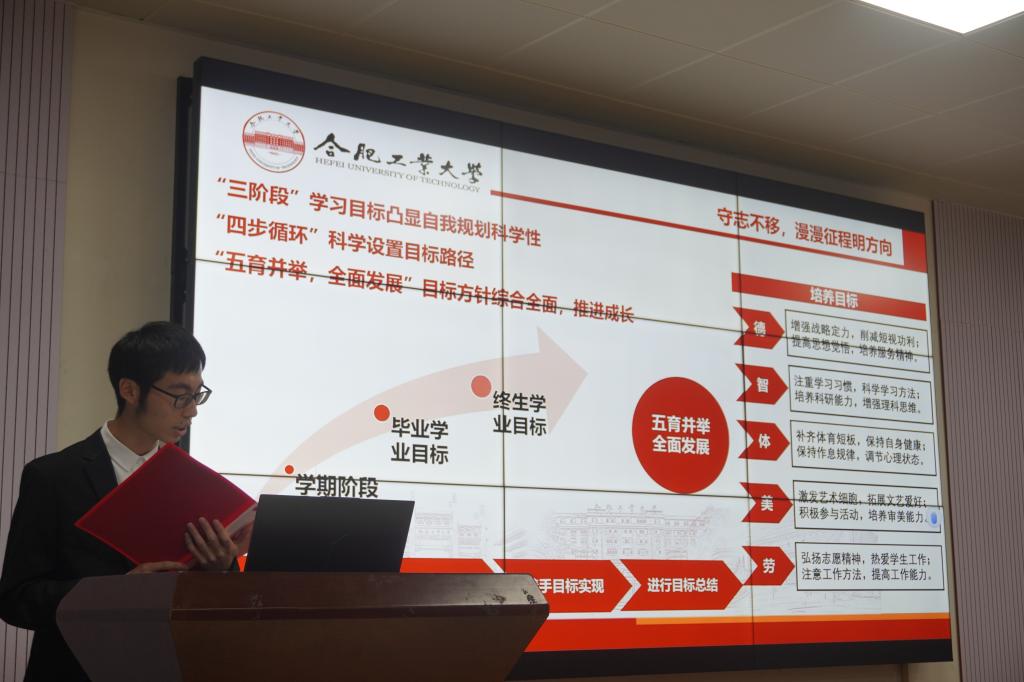 比赛。赛上,参赛选手各展风采,从自我分析、学业目标、学习策略、反馈评估等几个方面,详细阐述了自己未来四年大学的学业规划。选手们的精彩展示获得了现场观众的阵阵掌声。最终材料类22-4班贾梦珂等6人获一等奖,材料类22-1班李桃桃等10人获二等奖,材料类22-3班白树浩等16人获三等奖。