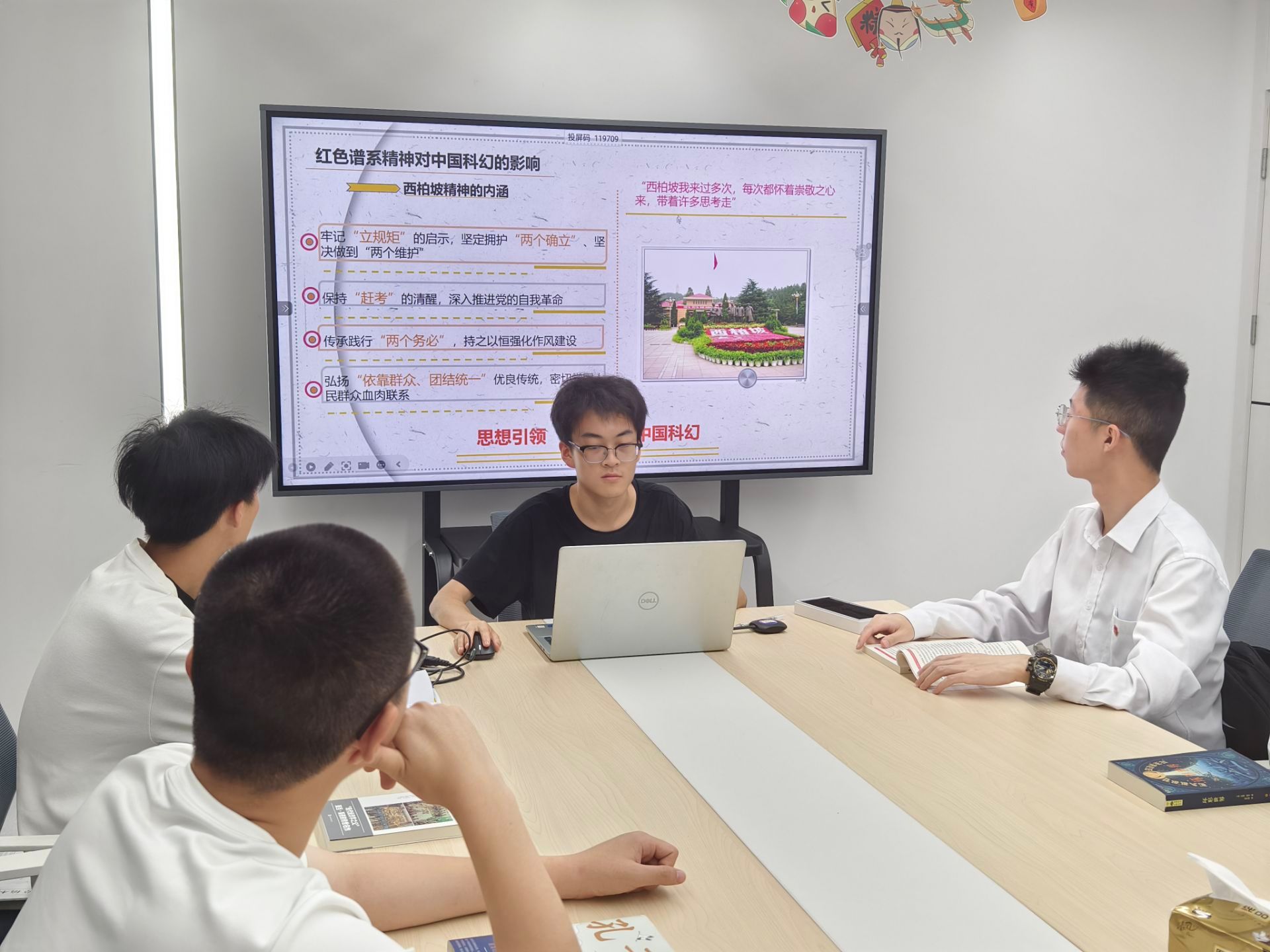 在交流讨论环节,同学们就如何更好地将红色精神融入科幻作品、如何推动中国科幻文学的发展等问题展开了热烈的讨论。大家一致认为,红色精神是中国文化的瑰宝,是激励我们不断前进的动力源泉。将红色精神融入科幻作品,不仅有助于传承和弘扬红色精神,也有助于推动中国科幻文学的创新和发展。
