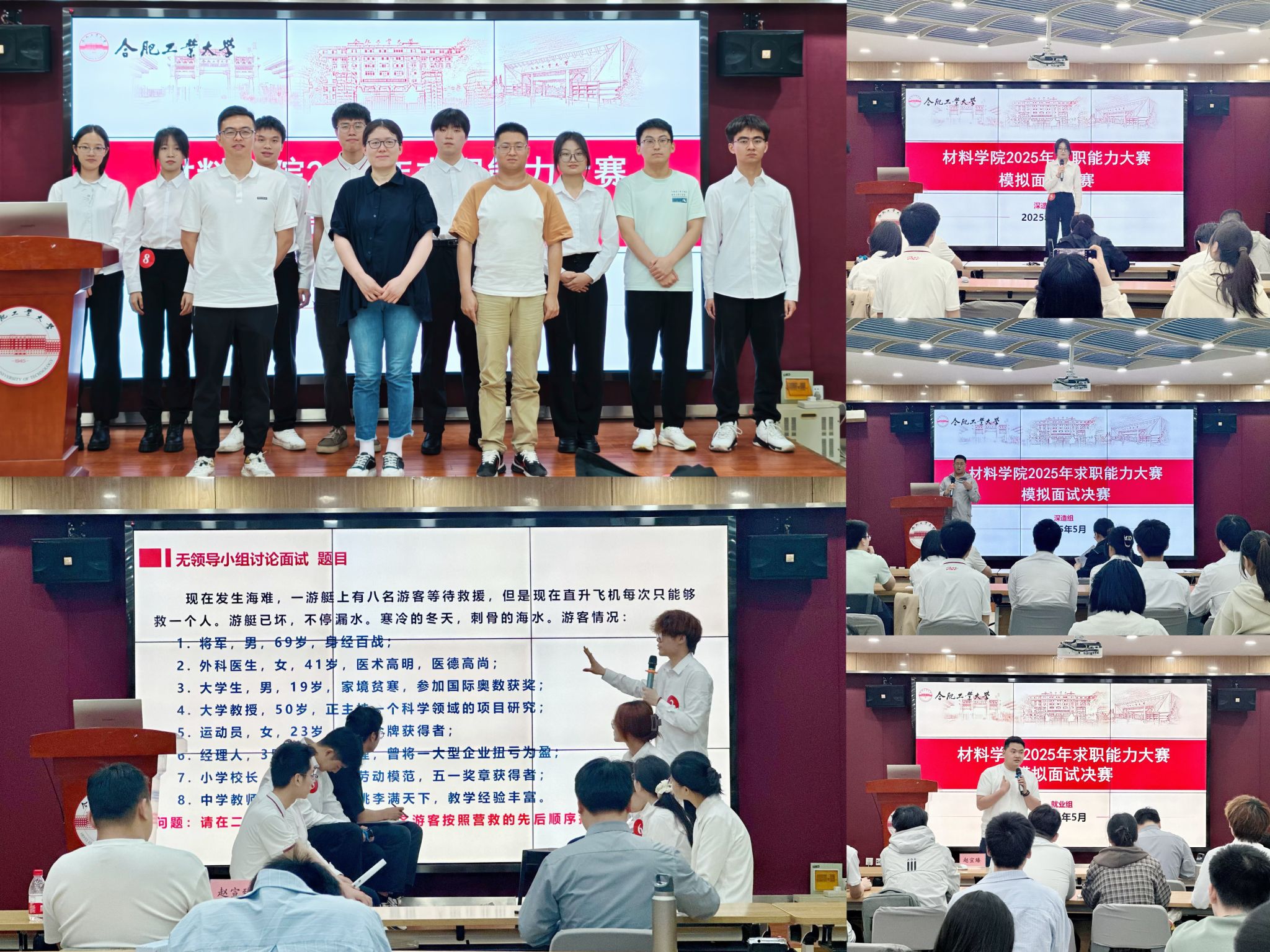 材料成型与控制工程系宋奎晶副教授、金属材料工程系潘亚飞副教授、材料物理及新能源材料与器件系宋晓辉副教授担任深造组评委;邀请晶合集成电路股份有限公司招募主任管理师夏邦栋、合肥新东方大学事业部招聘负责人赵宣臻担任就业组评委,联动“校企双导师”分别开展深造组和就业组决赛。深造组重点考察参赛选手科研潜质与学术思维,设置理论基础考察、科研经历介绍、英文问题问答等环节;求职组则通过结构化面试、无领导小组讨论等真实场景,着重评估选手职业匹配度与问题解决能力。最终张译文、宁紫奥等5人获得一等奖,何婷、田志等6人获得二等奖,徐崇高、王宇航等6人获得三等奖。