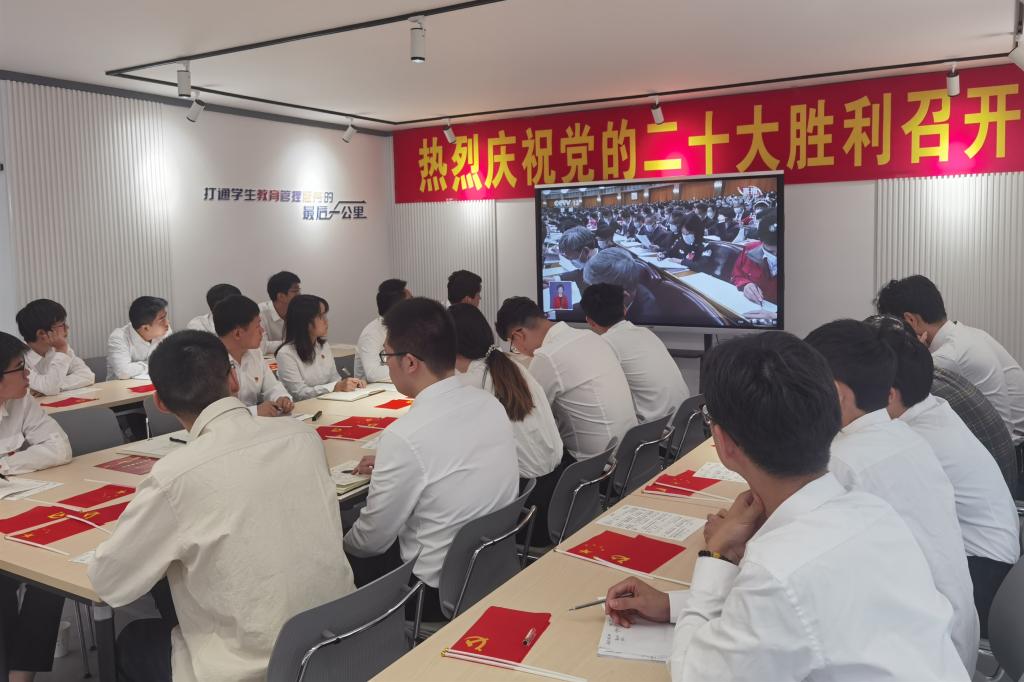 2020级硕士研究生学生党支部书记袁东立表示,党的十八大以来,新时代中国的每一瞬间都在创造奇迹、书写历史。全面建成小康社会,实现第一个百年奋斗目标;消灭绝对贫困,完成世界为之瞩目的世纪工程,谱写人间奇迹。我们有幸成为这个伟大时代的见证者、参与者。作为一名研究生党员、党支部书记,要坚定信仰、学思践悟,高擎信念旗帜;踔厉奋发、深入科研,吹响斗争号角;笃行不怠、实干担当,书写青春答卷,以实际行动学习贯彻落实党的二十大精神。