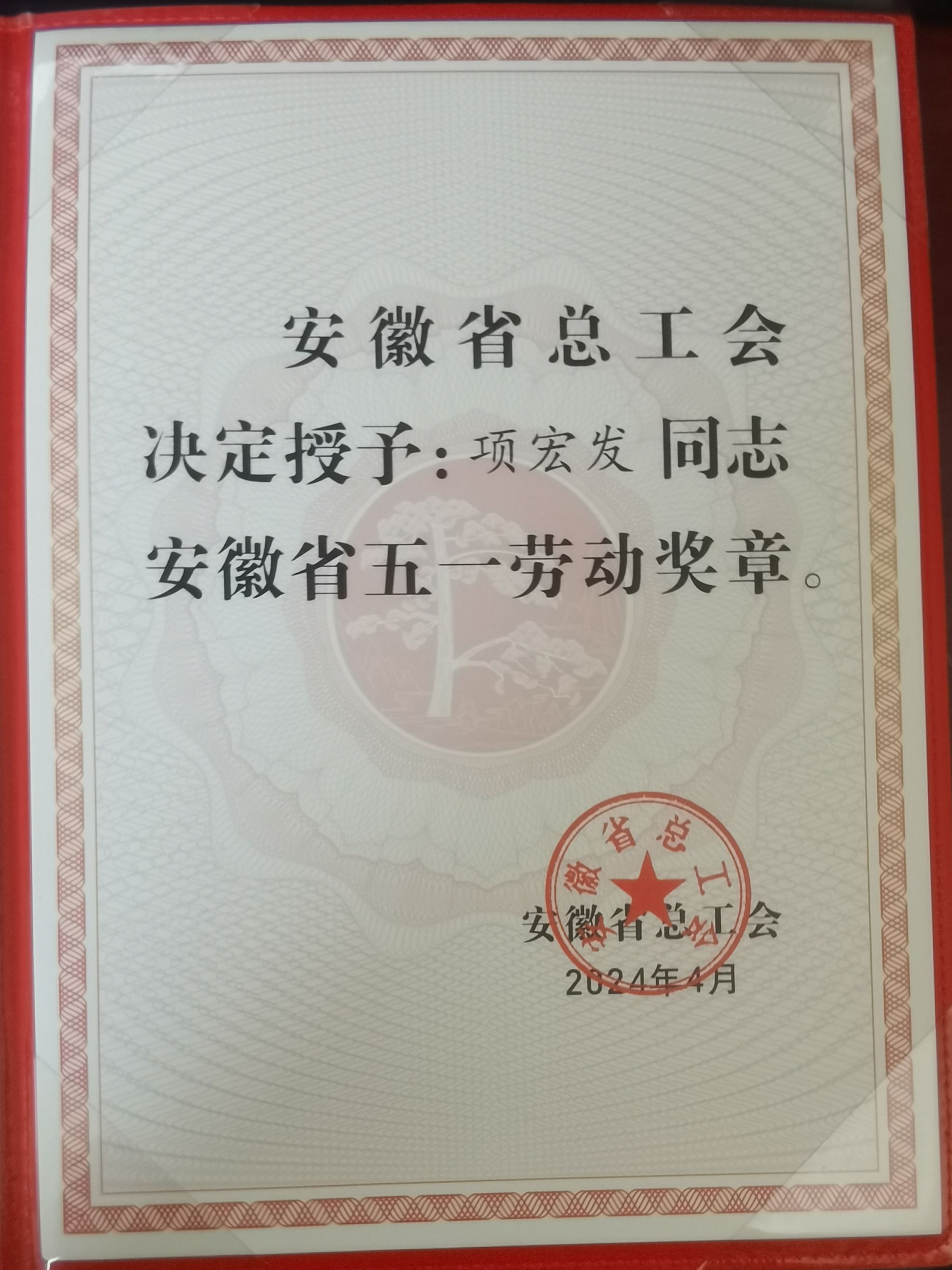 4月28日,2024年安徽省庆祝“五一”国际劳动节大会举行,U8娱乐 项宏发教授被授予“安徽省五一劳动奖章”。