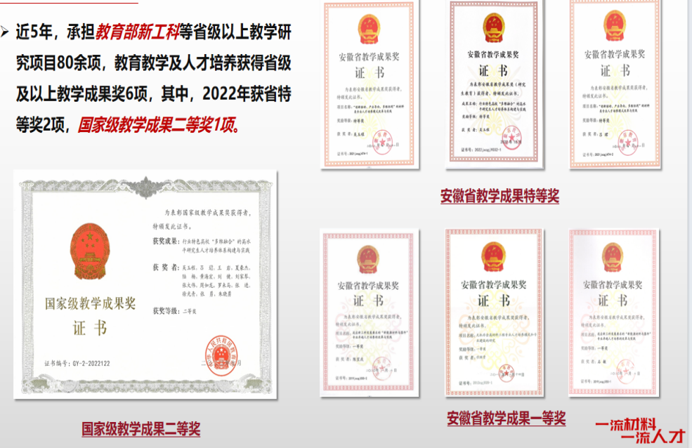 专业依托U8娱乐 资深教授和校外专家组成的教授团队进行精英人才培养。拥有教育部专业教学指导委员会委员3人,教育部长江学者特聘教授1名,国家优秀青年基金获得者1名,国家“万人计划”创新领军人才1名,教育部跨世纪和新世纪优秀人才2人,享受国务院政府津贴专家5人,安徽省杰出青年基金获得者3人等专家教授团队。专业秉持“服务国家重大战略工程以及战略性新兴产业”为宗旨,近五年来先后承担国家重点研发计划项目、国家重点基础研究发展规划项目、装备预研教育部联合基金、军委装发部“十三五”装备预研共用技术、国家自然科学基金优秀青年基金项目、国家自然科学基金项目、安徽省揭榜挂帅项目等,在Nature Communications,Advanced Materials, Advanced Energy Materials, Advanced Functional Materials, Chemical Communications等高水平学术期刊发表论文多篇,授权国家发明专利多项,先后获得包括国家级教学成果二等奖、安徽省科技进步一等奖、安徽省教学成果特等奖在内的奖励多项。
